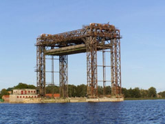 3 Von dort aus geht es weiter nach Dargen – vorbei am Zweiradmuseum – in Richtung Usedom Stadt über die idyllischen Dörfer Prätenow und Stolpe (Tipp: Besichtigung Stolper Schloss) bis Sie den vorläufigen Endpunkt im kleinen Dorf Karnin erreicht haben. Dort können Sie die Karniner Hubbrücke bestaunen, von der nach der Sprengung im April 1945 nur das gigantische Hubteil erhalten blieb.