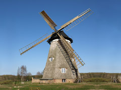 5 Gut gestärkt geht es dann durch das bekannte Töpferdorf Morgenitz zum Wasserschloss Mellenthin (Pause im hauseigenen Biergarten oder Schlossrestaurant möglich) und von dort weiter nach Neppermin bis Sie in Benz die Holländer Mühle (1830) erreichen. Außerdem kann in Benz auch die Petrikirche mit dazugehörigem Friedhof besichtigt werden (Ruhestätte des Malers Otto Niemeyer-Holstein).