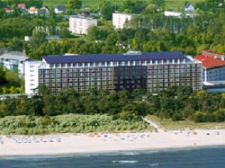 Sport- und Ferienhotel mit 330 Zimmern. Das Hotel liegt ruhig, am Waldrand und ist nur durch die Promenade vom Strand getrennt. Zur Ausstattung gehören Restaurant, Tanzbar, Nachtbar mit Disco, Ladenpassage, Friseur, Hotelsafe, Lift, Brasserie mit Cafeterrasse sowie ein Fitnessstudio. Ein besonderes Highlight stellt die angeschlossene Bernsteintherme dar. Hier finden Sie eine große Sauna, ein Meerwasser-Freizeitbad mit 800 qm Wasserfläche, ein Thermalbad mit Freiluftbecken, Haman und Rasulbad vor. Das Conference Center bietet auf einer Fläche von über 450 qm ideale Tagungsmöglichkeiten. Bis zu 350 Personen finden in den flexibel gestaltbaren Räumen Platz. Sie finden Räumlichkeiten mit viel Ruhe und Tageslicht vor. Durch variabel verstellbare Schiebewände entstehen bis zu vier separate Besprechungsräume. Hier können sich zwischen 20 und 180 Personen auf ihre Themen konzentrieren. Die Zimmer sind ansprechend mit Telefon, Sat-TV, Minibar und Dusche/WC ausgestattet.