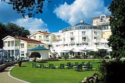 Elegantes Hotel mit 143 Zimmern in mediterranem Ambiente. Zentral und ruhig an der Promenade, in der Nähe der Heringsdorfer Seebrücke gelegen. Das Hotel verfügt über verschiedene Restaurants, Aussichtsterrasse mit herrlichem Blick auf die hoteleigene Parklandschaft, mehrere Bars, Kamin, Bibliothek, beheizter Innen- und Außenpool, Wellnessbereich mit verschiedenen Saunen, Laconium, Ruheraum und Fitnessraum. Die geschmackvoll eingerichteten Tagungsräume sind lichtdurchflutet, mit modernster Tagungstechnik ausgestattet und bieten Platz für bis zu 290 Personen. Von allen Konferenzräumen erreichen Sie direkt die Terrasse. Ihnen stehen fünf Tagungsräume (25 - 250 qm) zur Verfügung, die Variationsmöglichkeiten von einer individuellen Atmosphäre bis hin zur festlichen Galaveranstaltung ermöglichen. Die Zimmer sind komfortabel mit Sat- TV, Telefon, Safe, Radio, Minibar, Fön, Bad oder Dusche/WC ausgestattet.